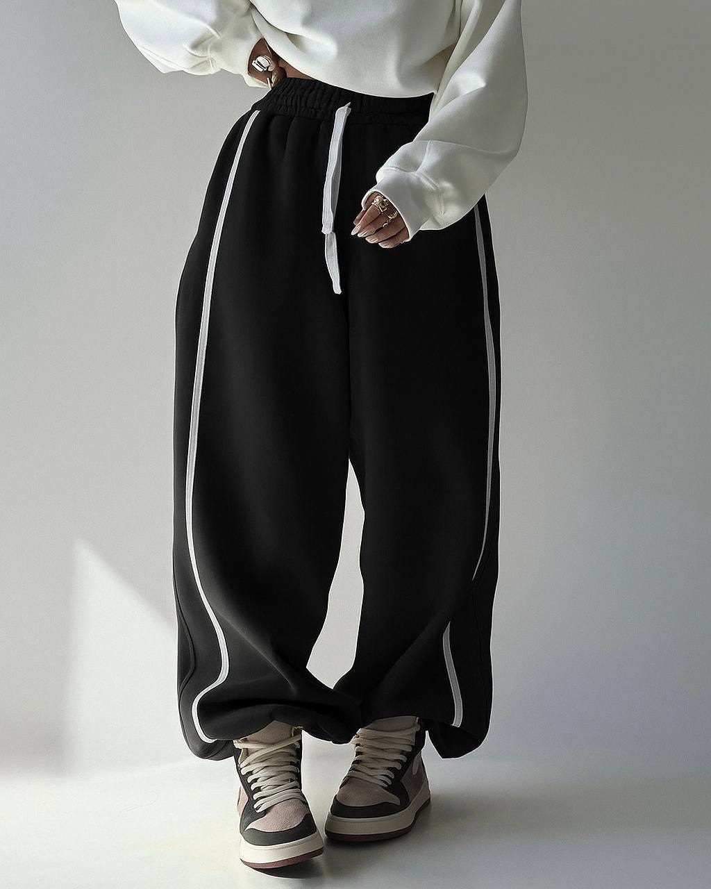 Головна » Магазин » ОДЕЖДА » ЖЕНСКИЕ ШТАНЫ ДЖИНСЫ БРЮКИ ЛОСИНЫ » Брюки из трехнитки на флисе свободного кроя по низу кулиска черный