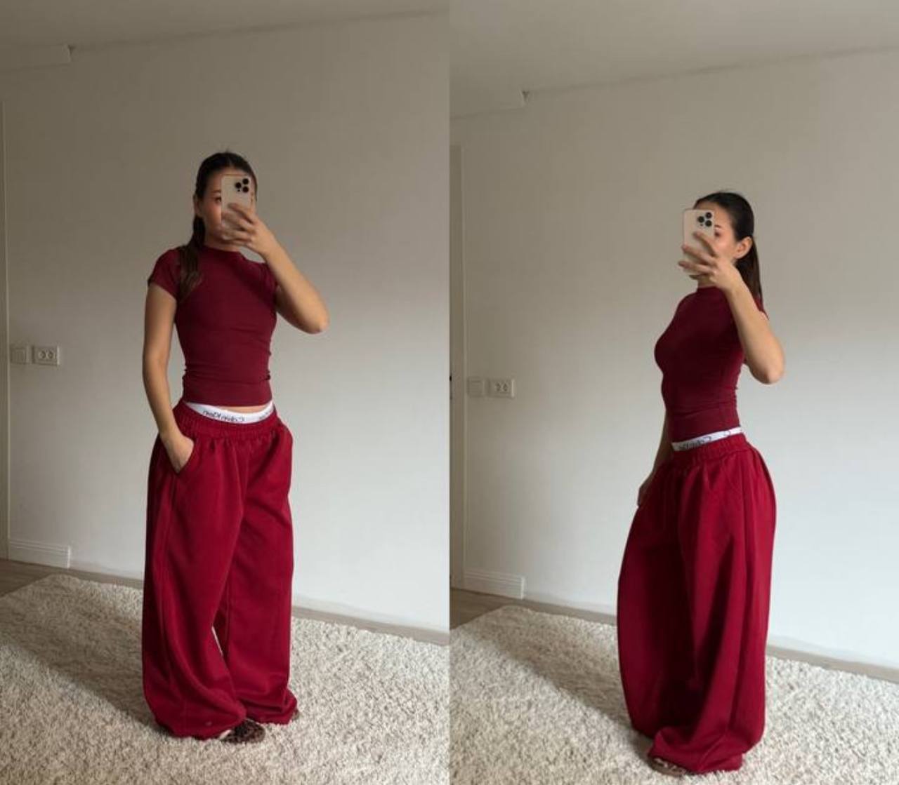 Будьте первым, кто оставил отзыв на “Брюки палаццо оверсайз с лого резинкой бордо”