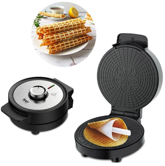 Вафельница электрическая 1000 Вт с антипригарным покрытием и конусом для трубочек для тонких круглых вафель трубочек спорыньи RAF R 565