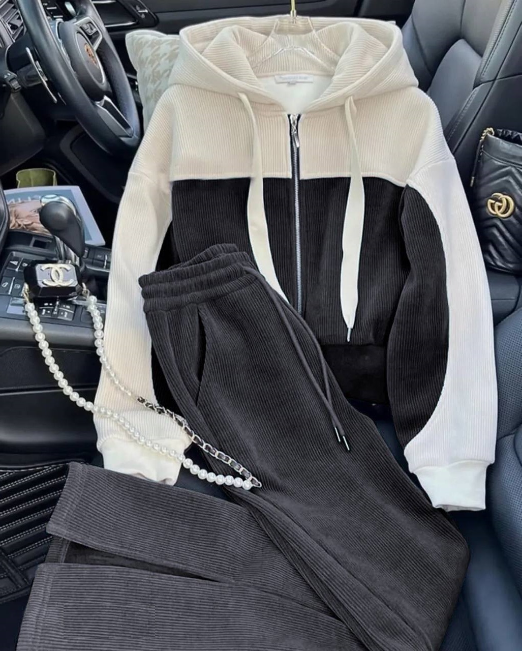 Головна » Магазин » ОДЕЖДА » ЖЕНСКИЕ СПОРТИВНЫЕ КОСТЮМЫ » Вельветовый костюм(кофта с капюшоном с контрастными вставками+брюки прямого кроя)молочный+графит