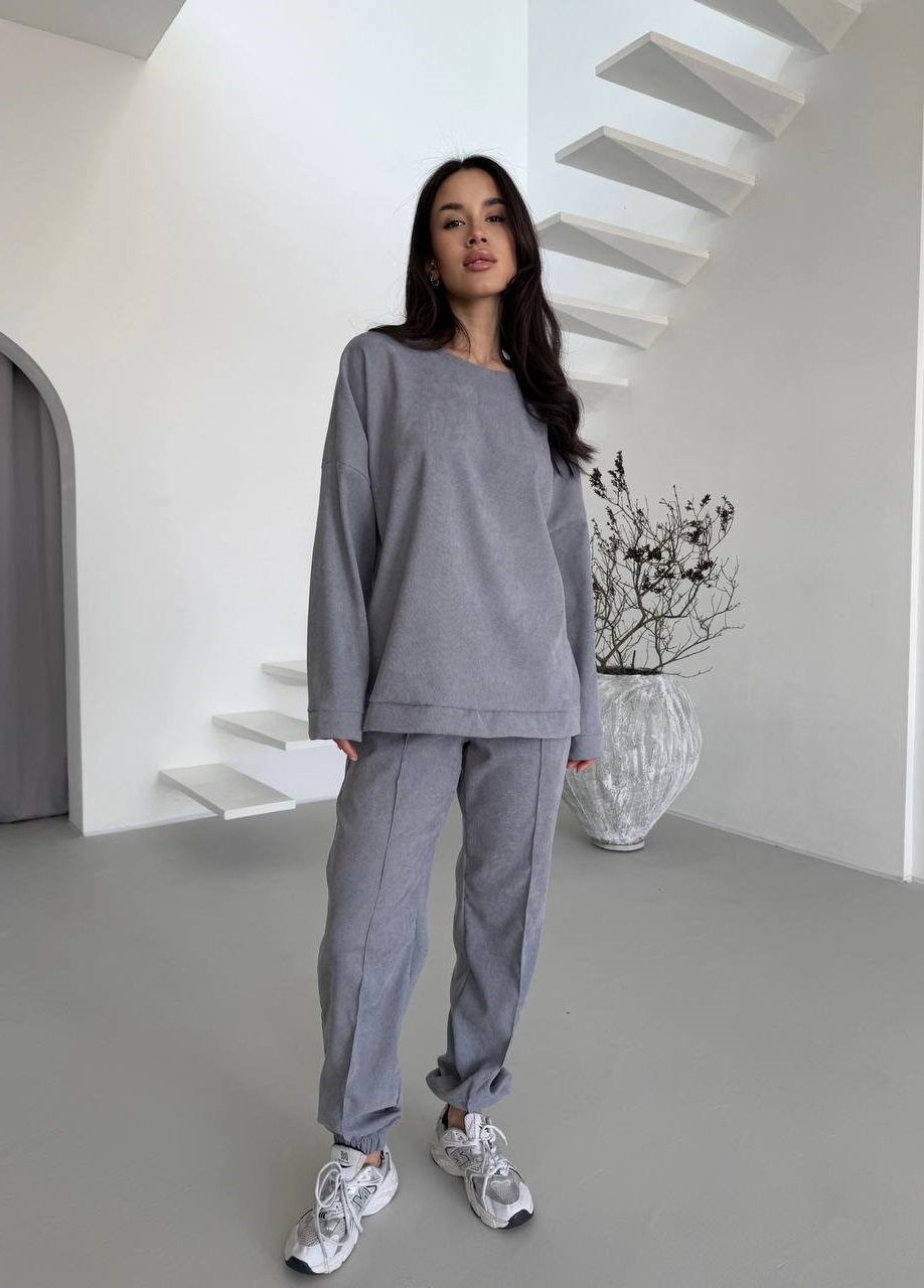 Головна » Магазин » ОДЕЖДА » ЖЕНСКИЕ СПОРТИВНЫЕ КОСТЮМЫ » Вельветовый костюм (кофта с манжетой по низу+брюки со стрелками) светло-серый