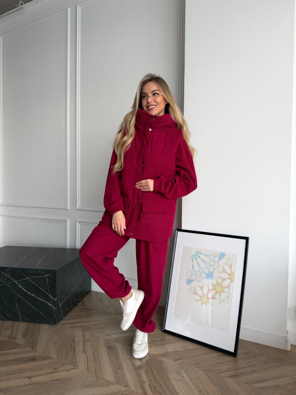 ВЕЛЬВЕТОВЫЙ КОСТЮМ ТРОЙКА С ТЕПЛЕНЬКОЙ ЖИЛЕТКОЙ бордо