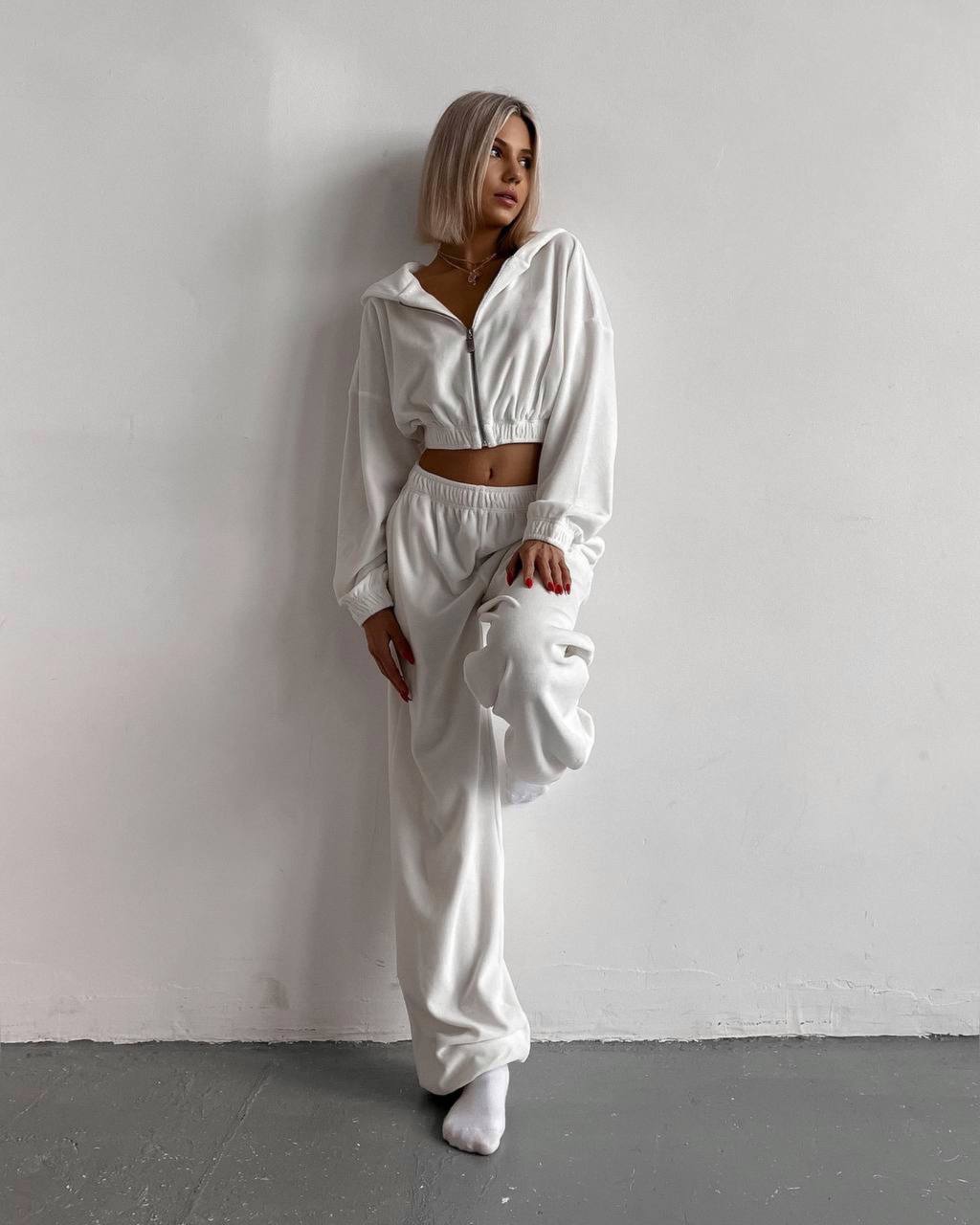 Головна » Магазин » ОДЕЖДА » ЖЕНСКИЕ СПОРТИВНЫЕ КОСТЮМЫ » Велюровый Костюмчик: кофта на молнии+прямые штаны белый