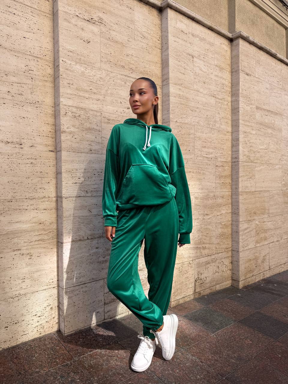 Головна » Магазин » ОДЕЖДА » ЖЕНСКИЕ СПОРТИВНЫЕ КОСТЮМЫ » Велюровый костюм (кофта с капюшоном+карманом+брюки манжета на резинке) зеленый
