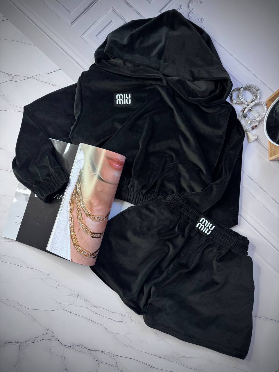 Головна » Магазин » ОДЕЖДА » ЖЕНСКИЕ СПОРТИВНЫЕ КОСТЮМЫ » Велюровый костюм (кофта с капюшоном+накатом+шорты) черный