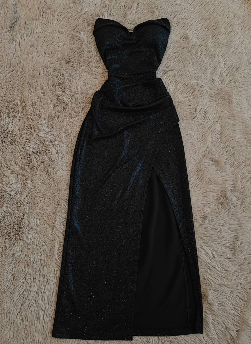 Вечернее платье с высоким разрезом (сияющий диско) черный