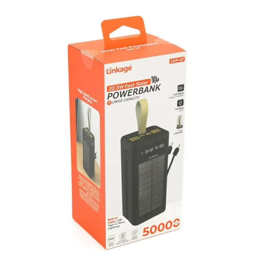 Забудьте о разряженных гаджетах с мощным внешним аккумулятором LINKAGE LKP-47. Вместимости в 50000mAh хватит на множество полных циклов зарядки смартфона, планшета или других девайсов. Главная фишка модели – интегрированная солнечная панель, которая позволяет заполнять запас энергии автономно, где бы вы ни находились: в горах, рыбалке или во время длительной прогулки на природе.