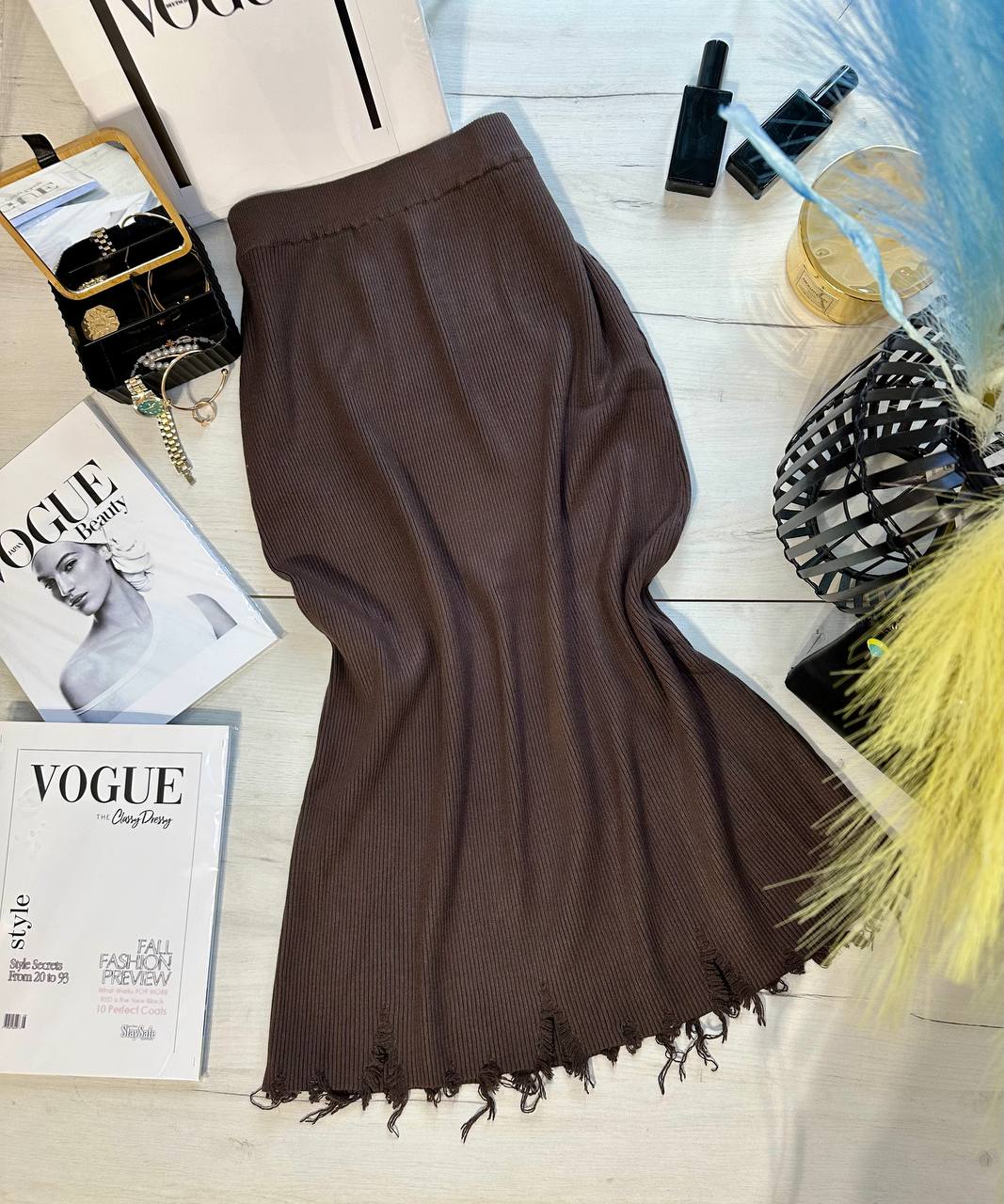 Вязаная юбка по фигуре с акцентными разрезами по низу юбки шоколад