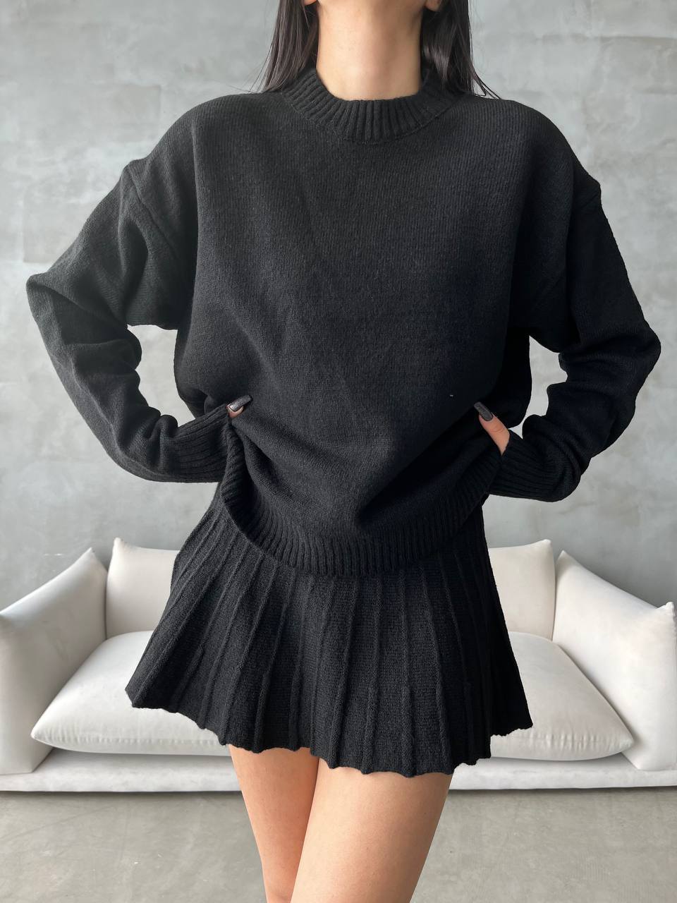 Будьте первым, кто оставил отзыв на “Вязаный костюм свитер оверсайз и юбочка черный”