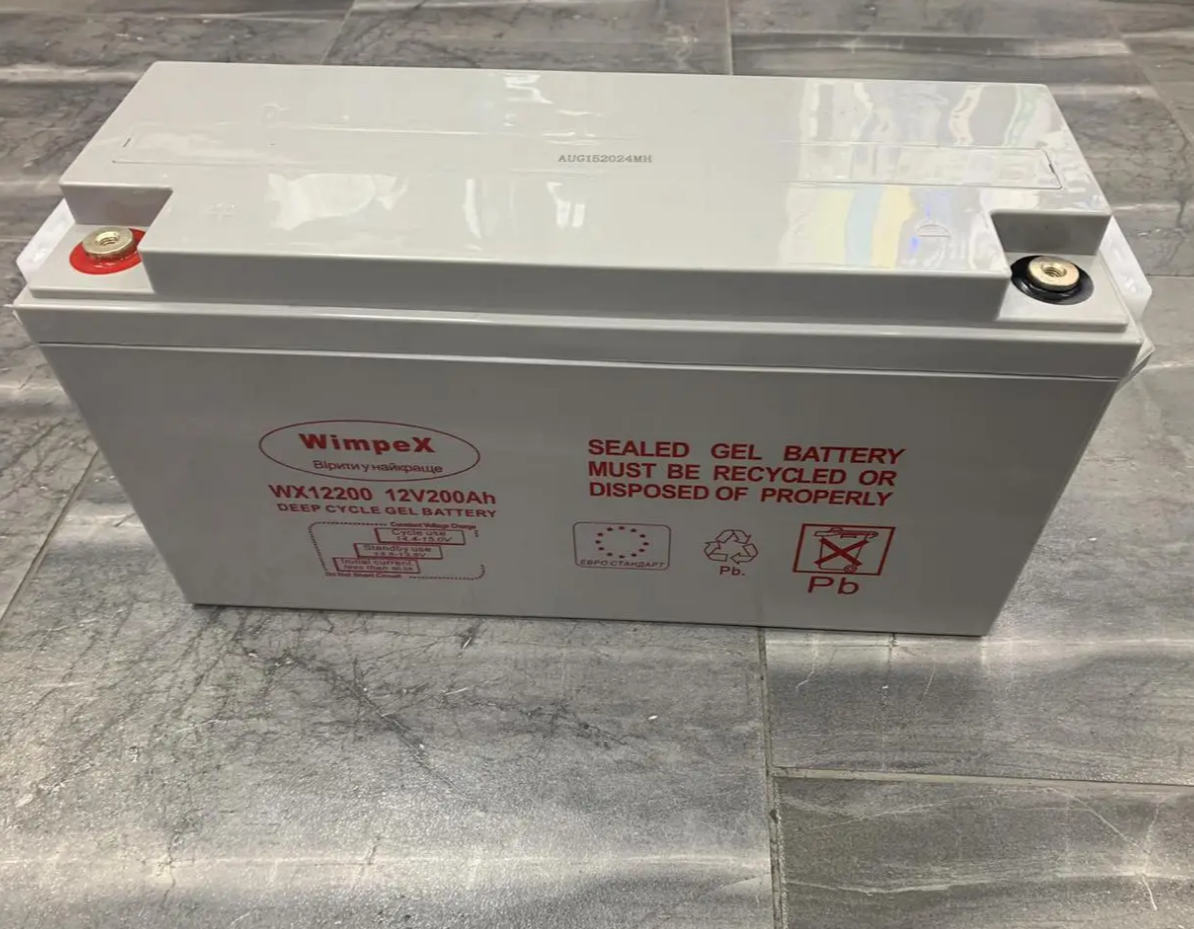 Гелевый тяговый аккумулятор 200 ампер, Wimpex WX 12V 200 Ah, обеспечивает питание и имеет широкий спектр применения. Его конструкция рассчитана на работу без технического обслуживания, поэтому нет необходимости проверять уровень электролита или доливать воду на протяжении всего срока службы.