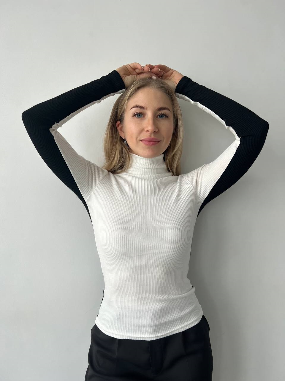 Гольф Ткань: Ангора рубчик (60% шерсть, вискоза) Размеры: 42-44, 46-48 Цвета: черный, бежевый, молоко, черный + белый комбинированный цвет, можно носить любой стороной