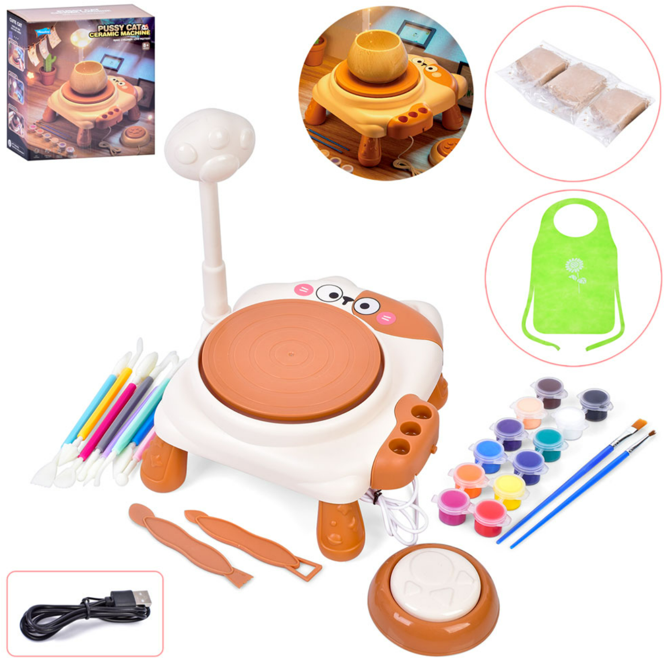 Детский гончарный круг с фартуком для рисования из глины, инструмент для творчества, игрушка для развития, инструменты для лепки.