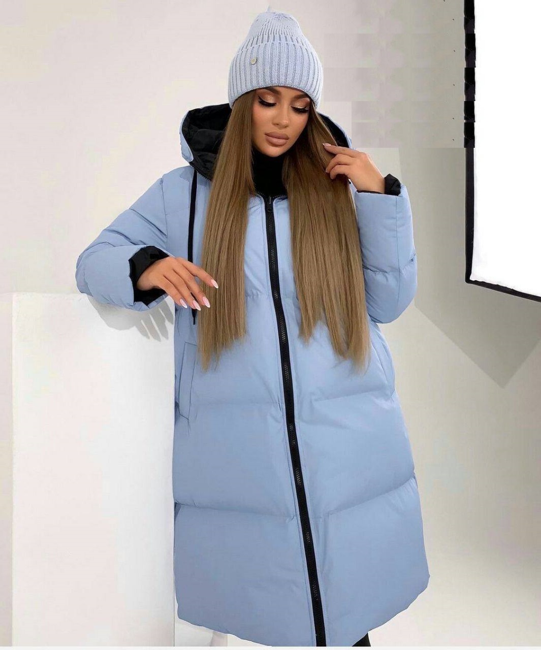 Двухсторонняя зимняя куртка на молнии голубой+черный