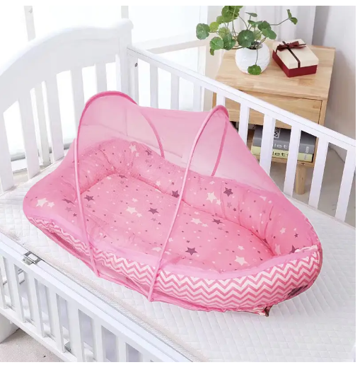 Переносная детская кроватка с москитной сеткой — отличный подарок малышу на праздник или день рождения.