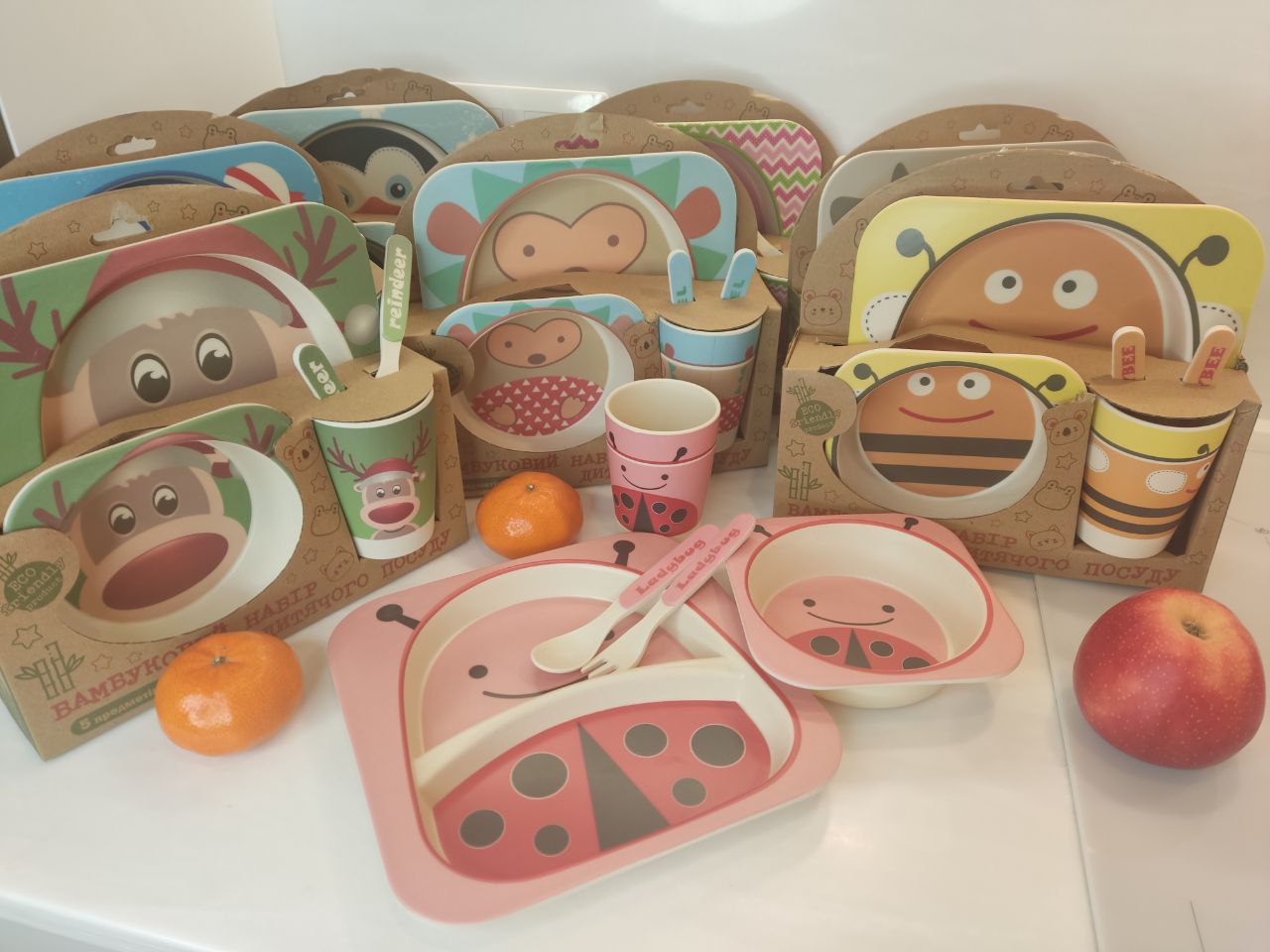 Детская посуда из эко-волокон бамбука для детей комплект 5 в 1