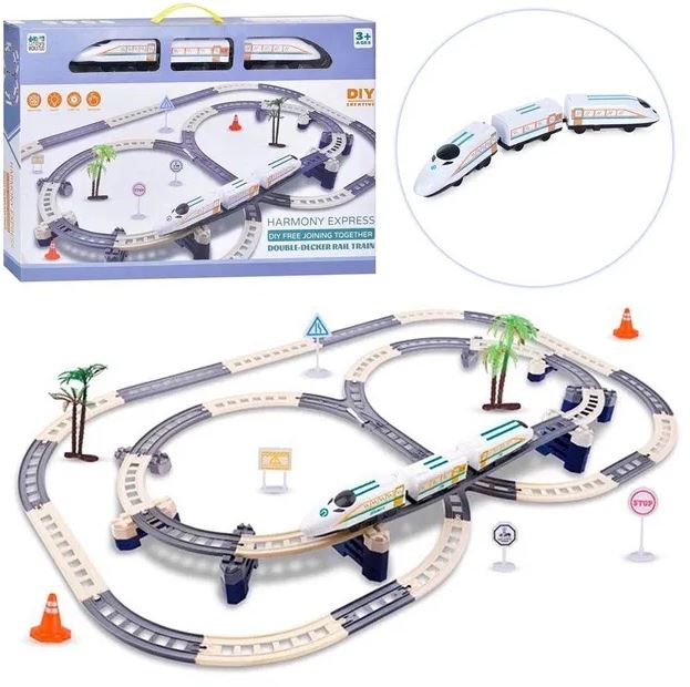 Железная дорога выполнена в современном дизайне. Железная дорога легко собирается благодаря удобному креплению рельсов, вагоны легко присоединяются к поезду.