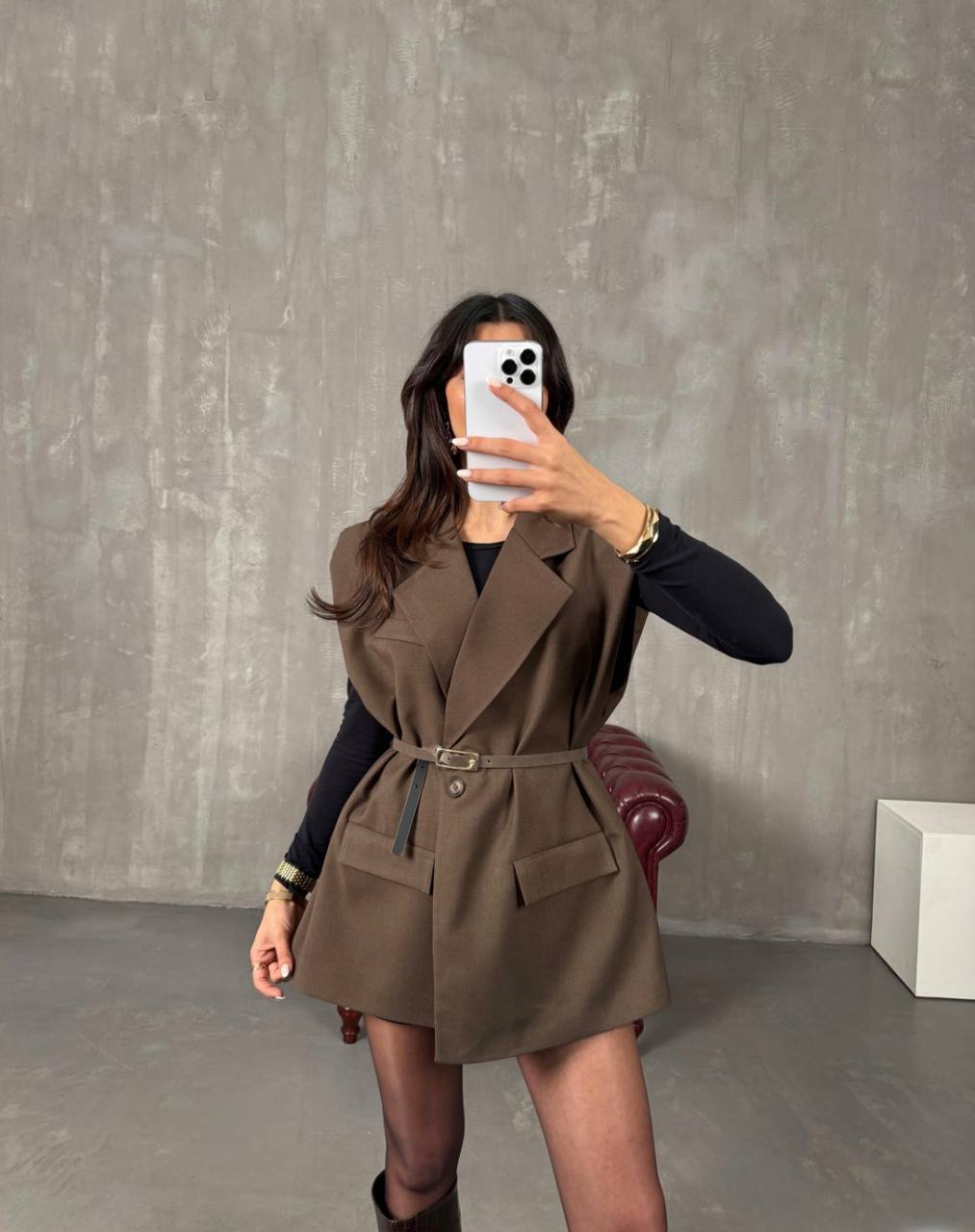 Будьте первым, кто оставил отзыв на “Женская Жилетка с поясом на пуговице шоколад”
