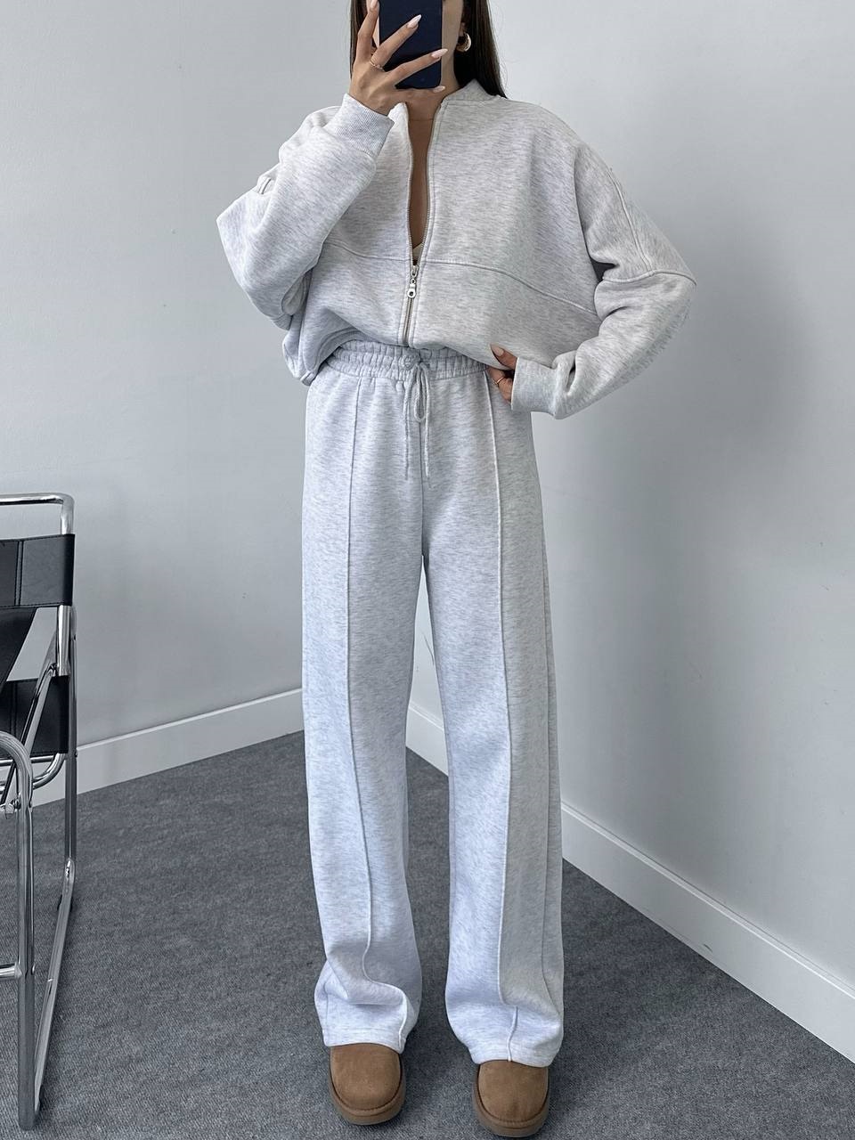 Женский костюм (кофта на молнии+брюки на резинке просроченные швы) трехнитка на флисе серый