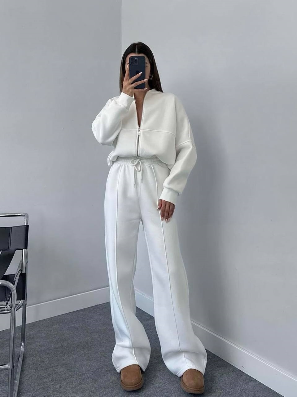 Женский костюм (кофта на молнии+брюки на резинке просроченные швы) трехнитка на флисе молоко
