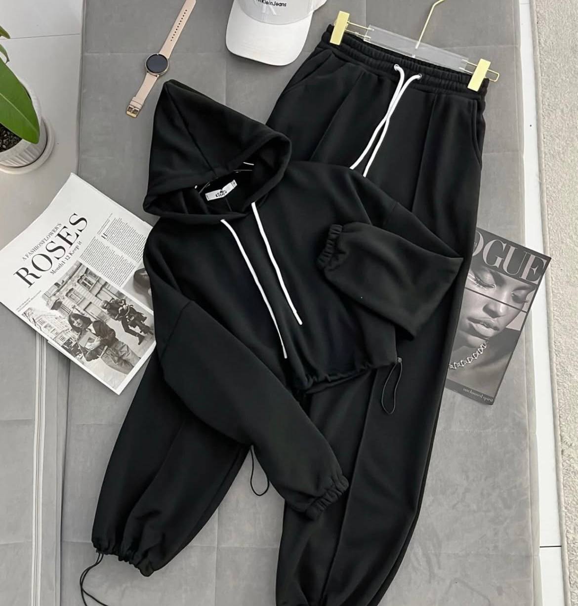 Головна » Магазин » ОДЕЖДА » МУЖСКИЕ КОСТЮМЫ » Женский костюм толстовка с затяжками+штаны свободные (тринитка на флисе) черный