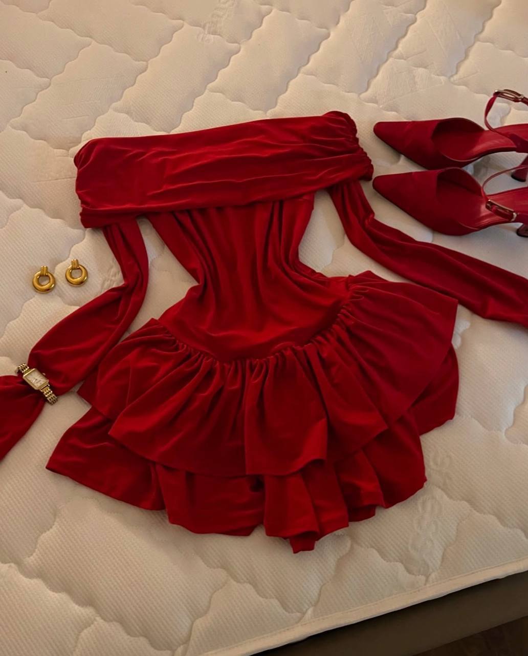 Будьте первым, кто оставил отзыв на “Женское платье со спущенными плечами и пышными воланами красный”