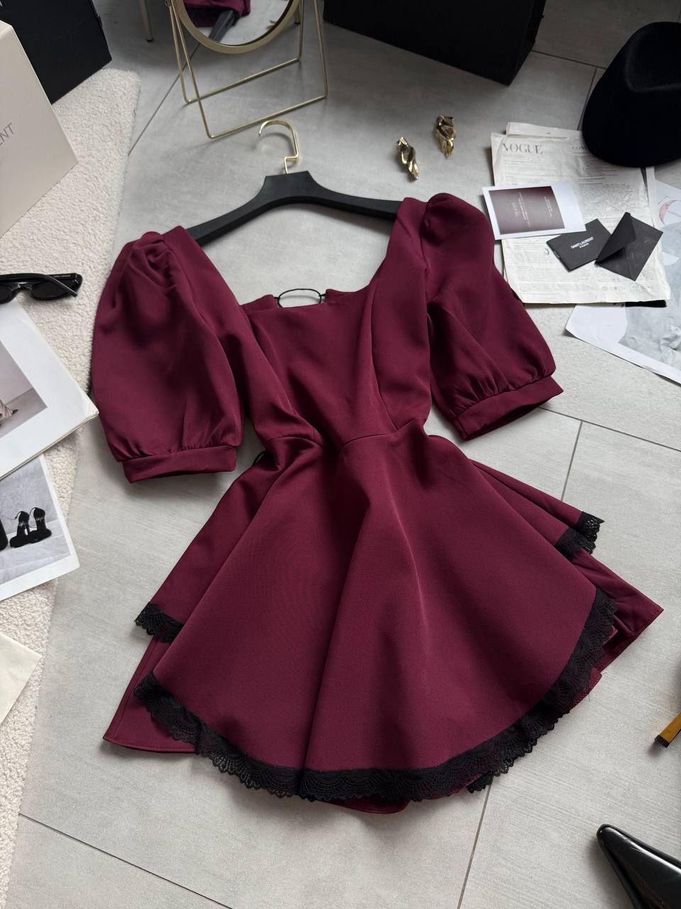 Женственный комбинезон с корсетной шнуровкой+ассиметричной юбкой с кружевом марсал