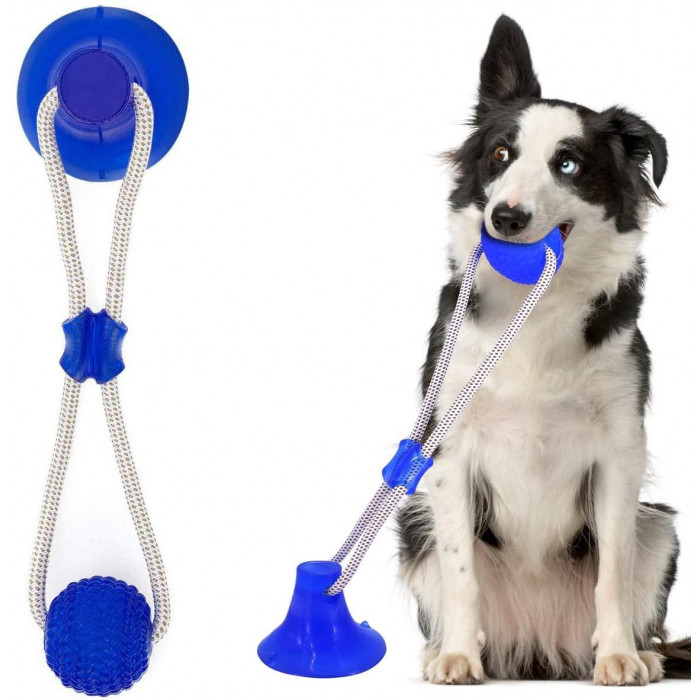 Игрушка для собак канат на присоске с мячом — отлично подходит для щенков при прорезывании зубов, и для активных игр взрослых собак.