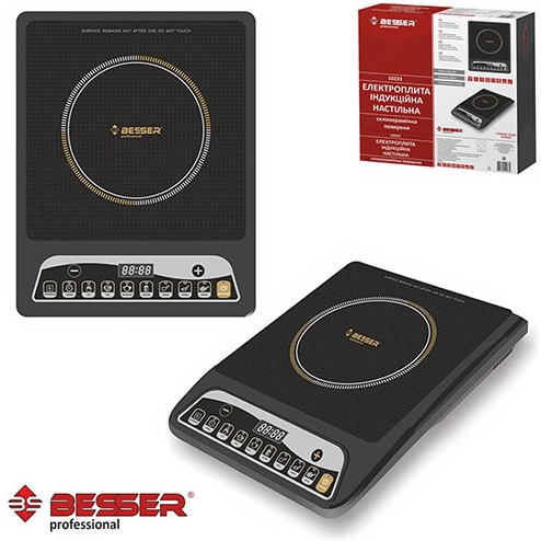 Индукционная плита стеклокерамическая Besser 10233 2000W это кухонная электрическая плита, разогревающая металлическую посуду индуцированными вихревыми токами,