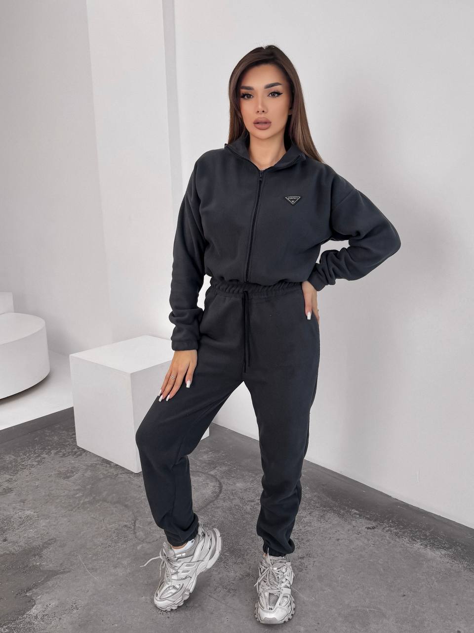 Комбез из флиса на молнии: воротник-стойка+пояс на резинке графит