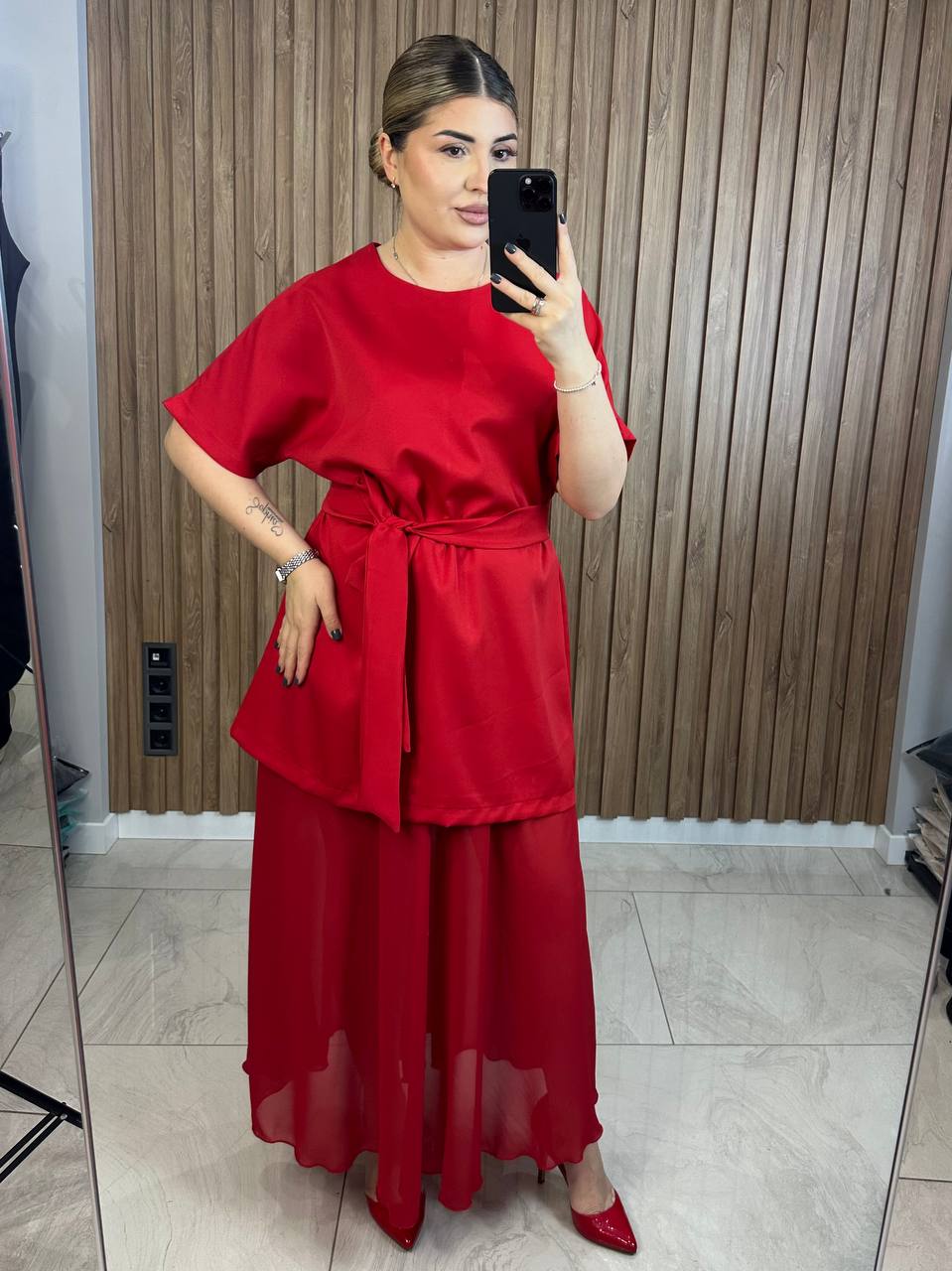 Комплект платье с коротким рукавом+шифоновая юбка красный