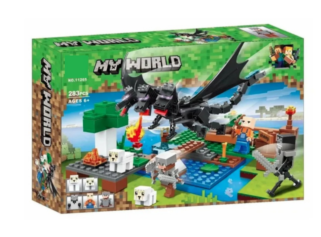 Конструктор My World Minecraft Майнкрафт атака черного дракона на ферму 283 детали