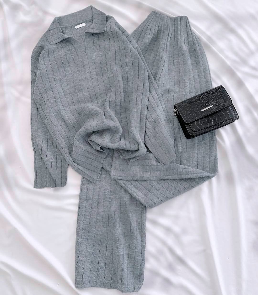 Будьте первым, кто оставил отзыв на “Костюм Ангора в широкий рубчик: Оверсайз кофта+штаны палаццо на высокой посадке серый”