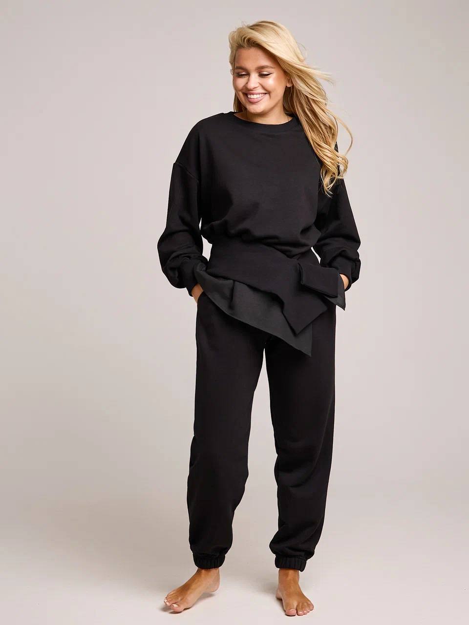 Костюм с баской в винном и черном оттенке – идеальный выбор для прохладных летних и осенних вечеров и не только!