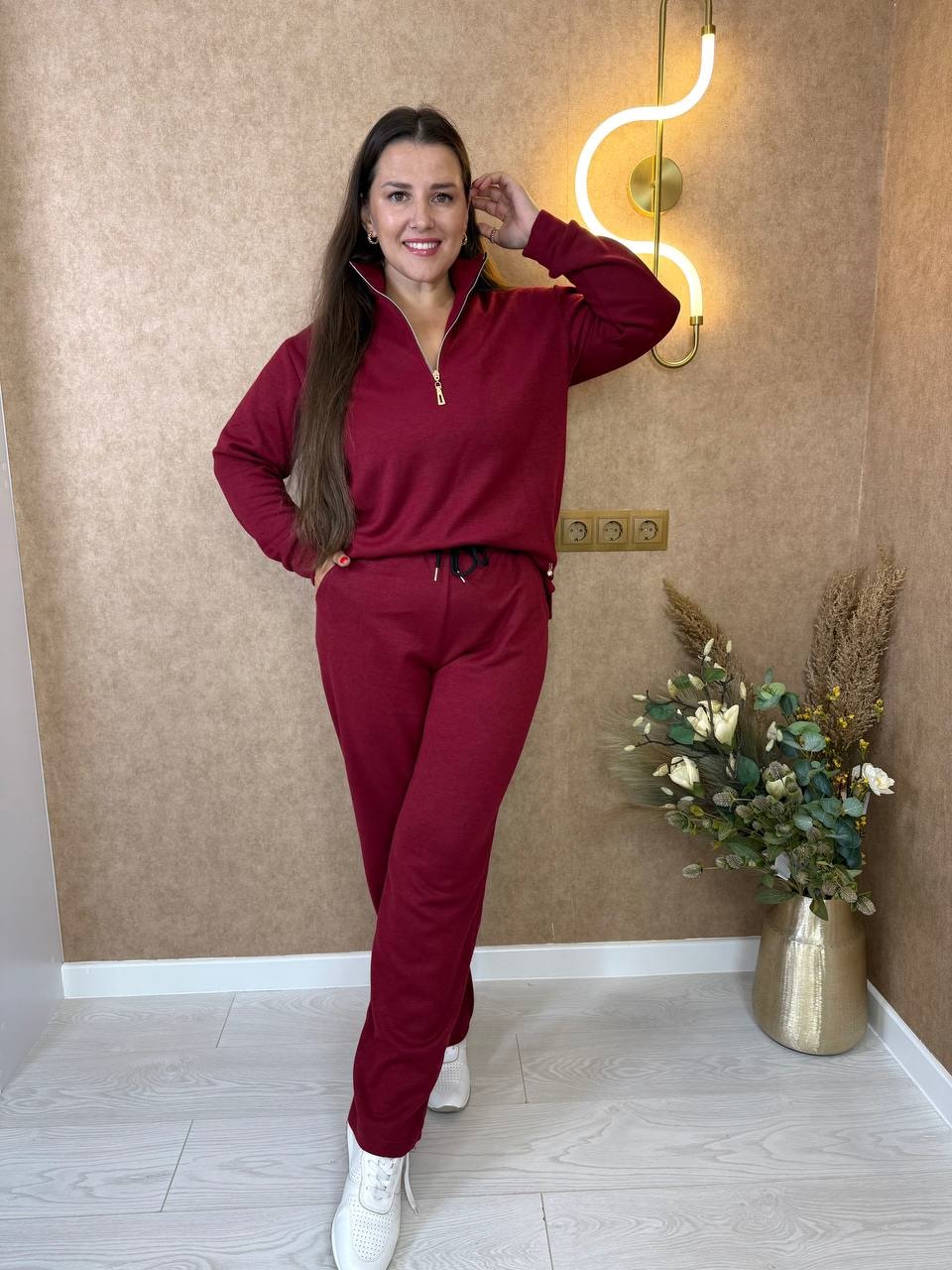 Костюм-двойка: кофта на молнии на груди+брюки вниз свободные бордо