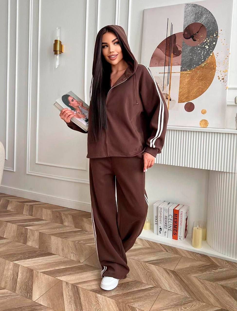 Костюм двойка оверсайз с лампасом: толстовка+штаны шоколад