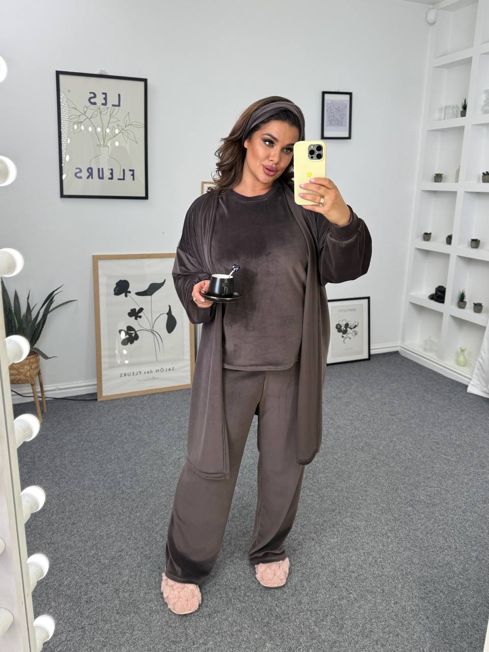 Костюм домашний тройка (футболка+ штаны с карманами+халат с поясом) шоколад