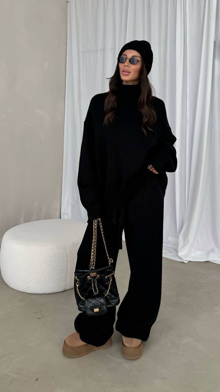 Костюм из ангоры свободного кроя (Свитер+Брюки) черный
