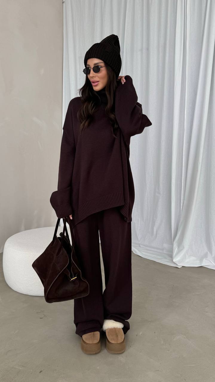 Свитер и Брюки свободного кроя на высокой посадке.