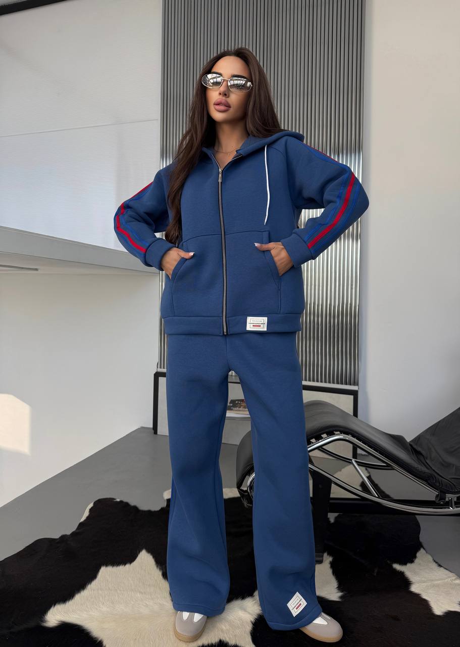 Костюм из тинитки на флисе: кофта на молнии+штаны синий