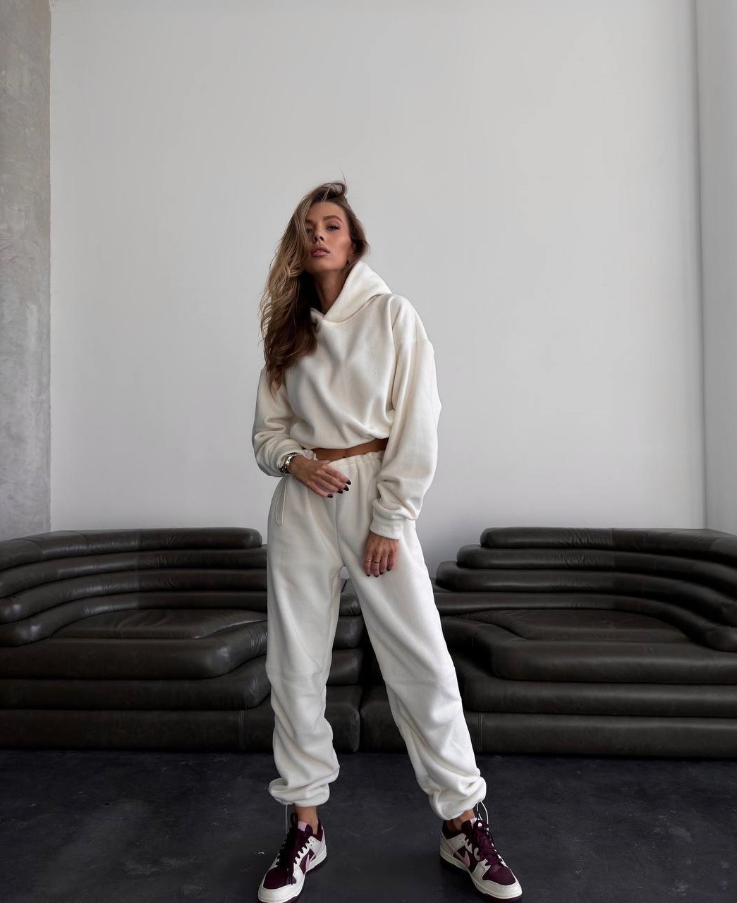 Головна » Магазин » ОДЕЖДА » ЖЕНСКИЕ СПОРТИВНЫЕ КОСТЮМЫ » Костюм из флиса (кофта низ затягивается кулиской+брюки с манжетой на резинке) молочный