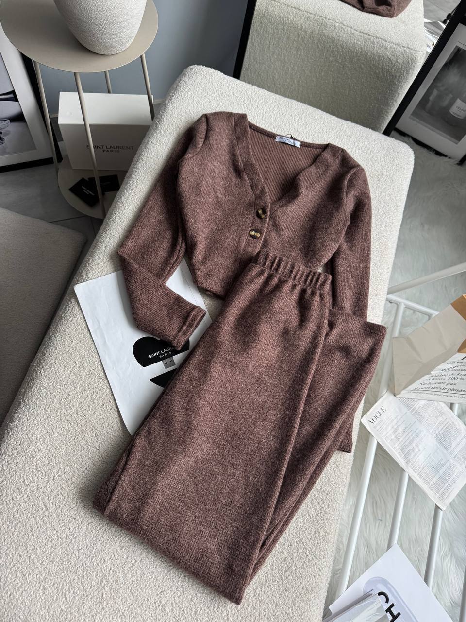 Костюм: кардиган + штаны палаццо (ангора рубчик) шоколад