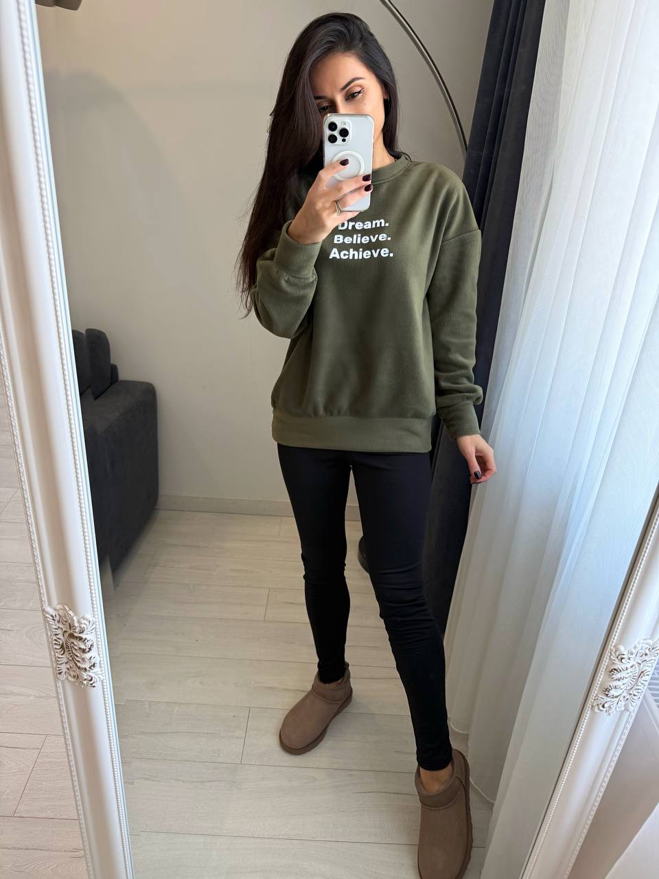Костюм (кофта из флиса с накатом+эластичные лосины на флисе) оливка