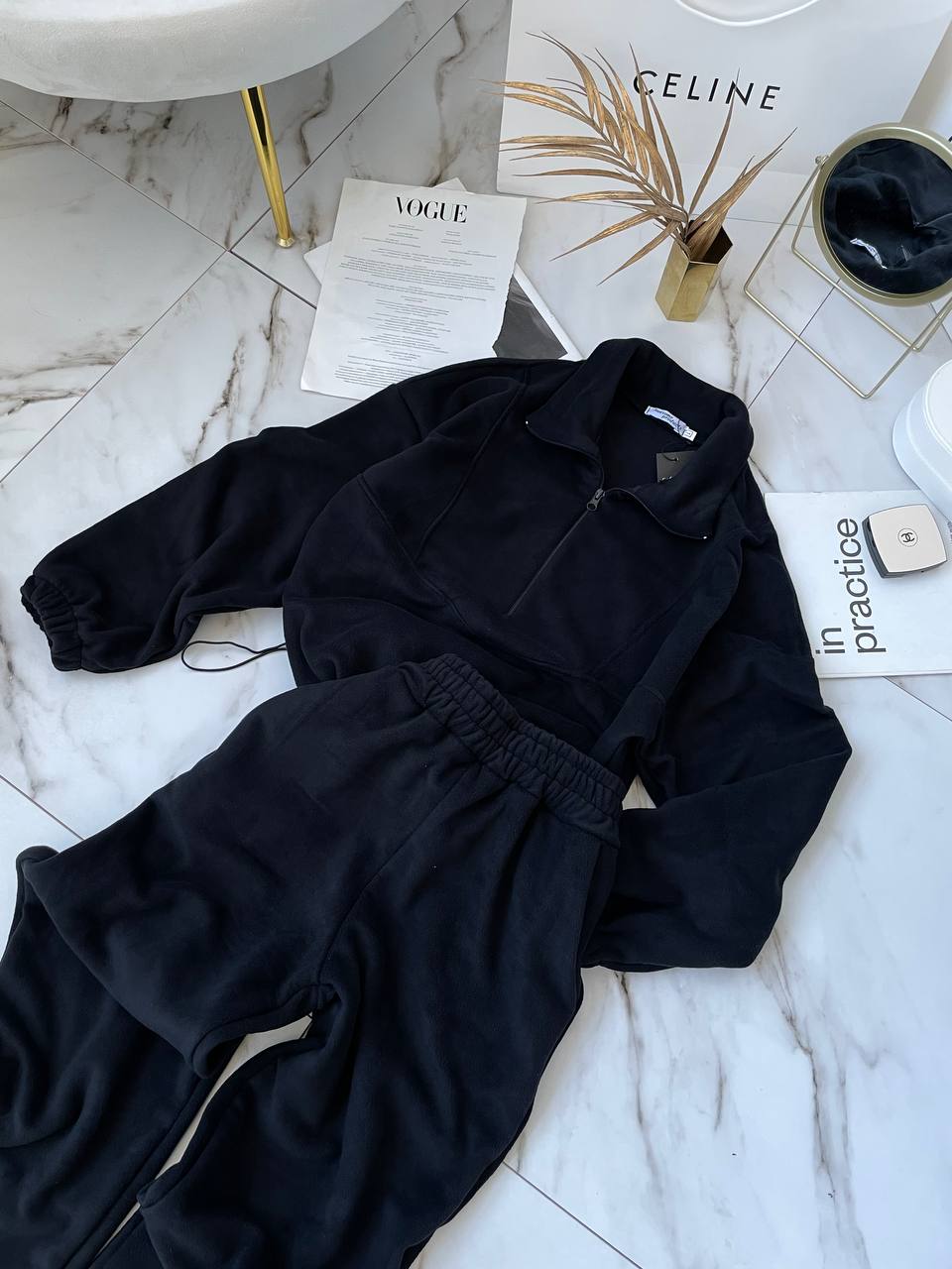 Костюм: кофта на затяжках снизу+джоггеры (двухсторонний флис) черный