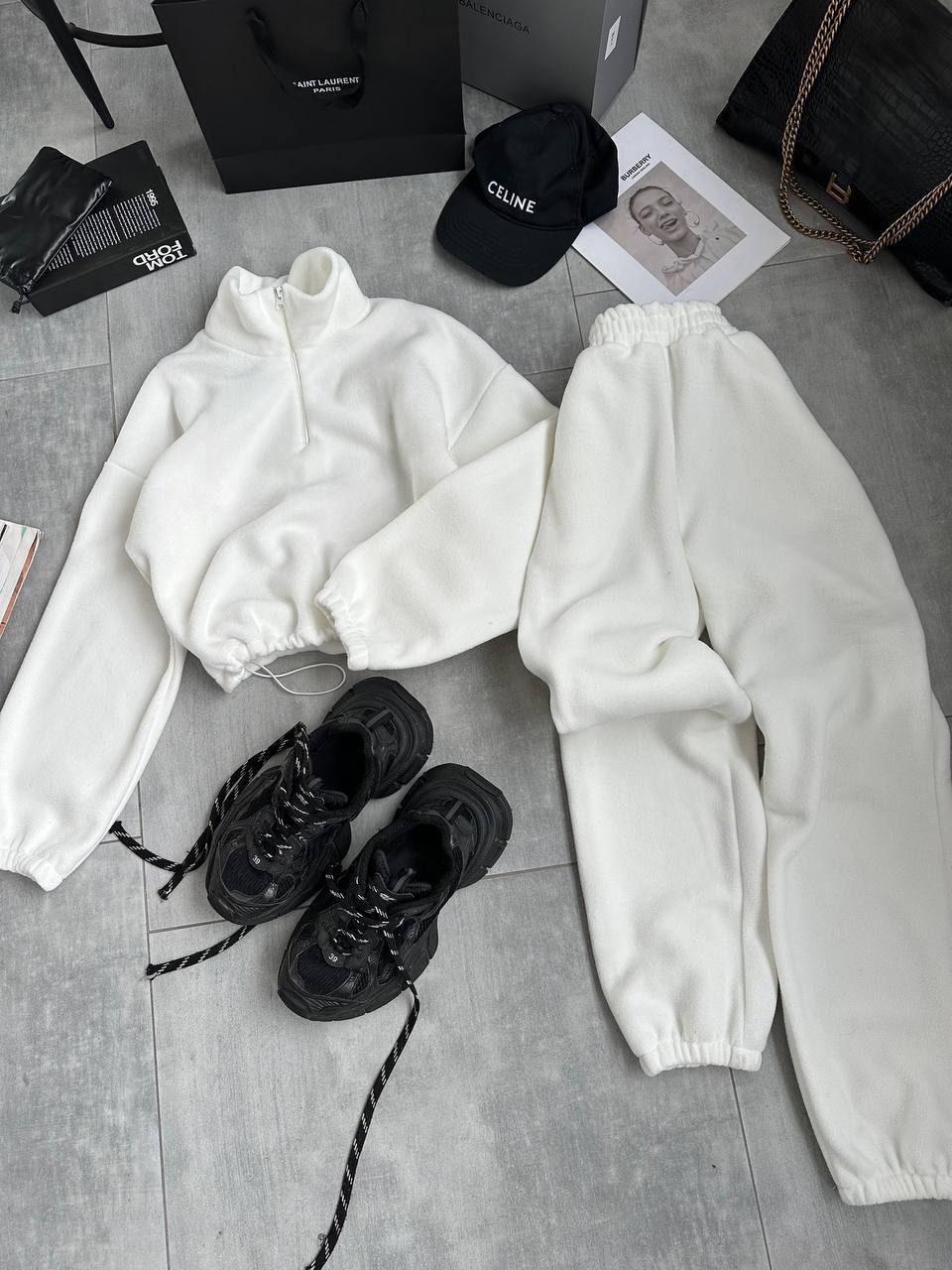 Костюм: кофта на затяжках снизу + джоггеры (двухсторонний флис) белый