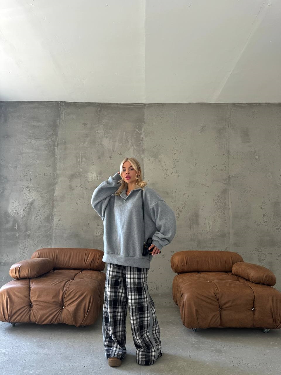Головна » Магазин » ОДЕЖДА » ЖЕНСКИЕ СПОРТИВНЫЕ КОСТЮМЫ » Костюм (кофта оверсайз из флиса+брюки с лампасами из фланели в клетку) меланж