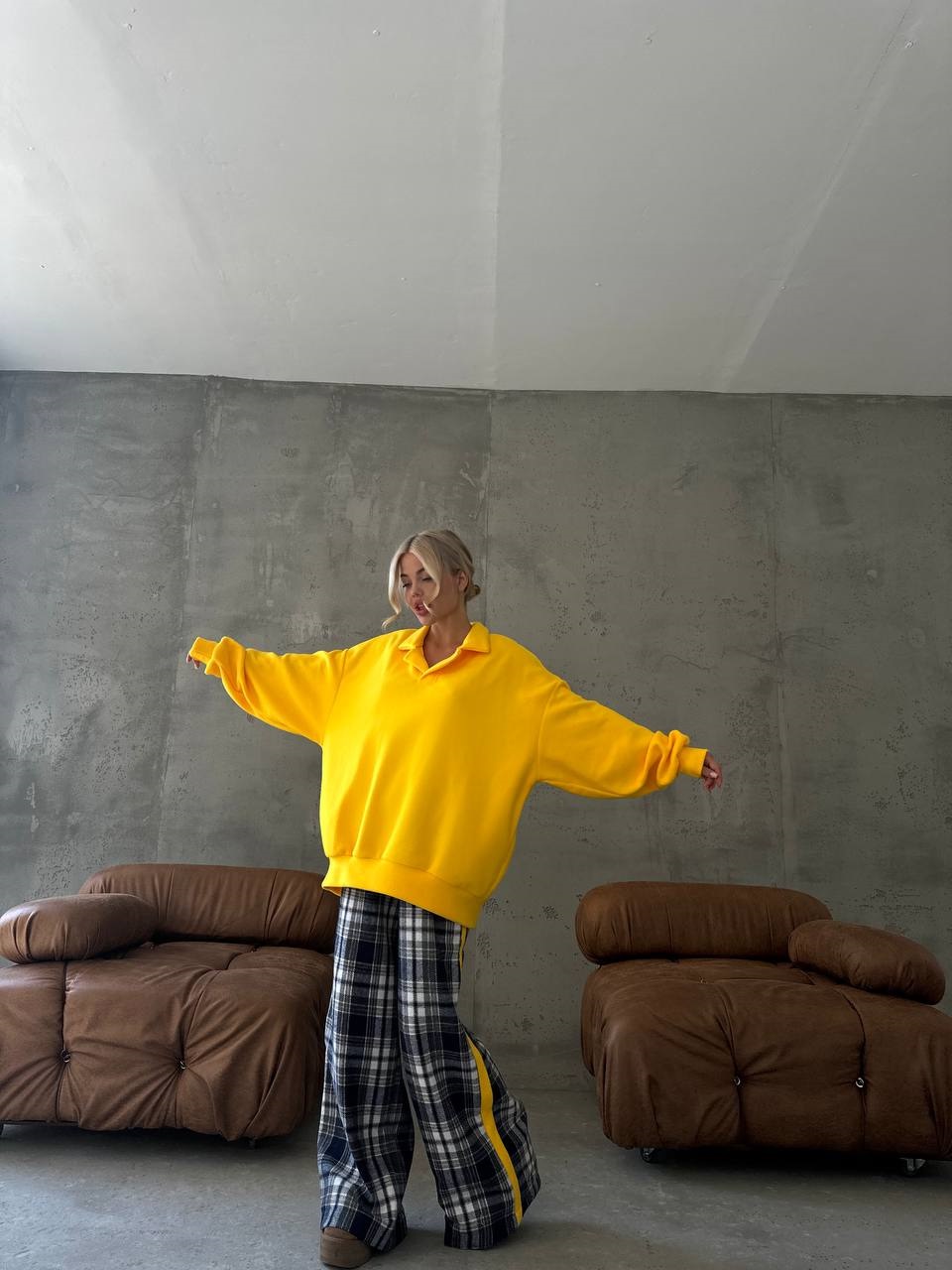 Головна » Магазин » ОДЕЖДА » ЖЕНСКИЕ СПОРТИВНЫЕ КОСТЮМЫ » Костюм (кофта оверсайз из флиса+брюки с лампасами из фланели в клетку) желтый