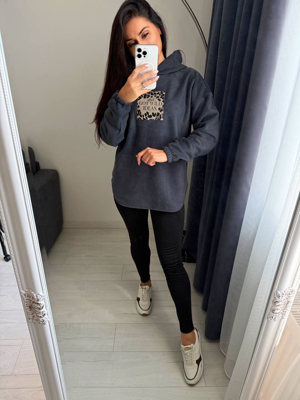 Костюм (кофта с капюшоном+накатом+эластичные лосины на флисе) графит