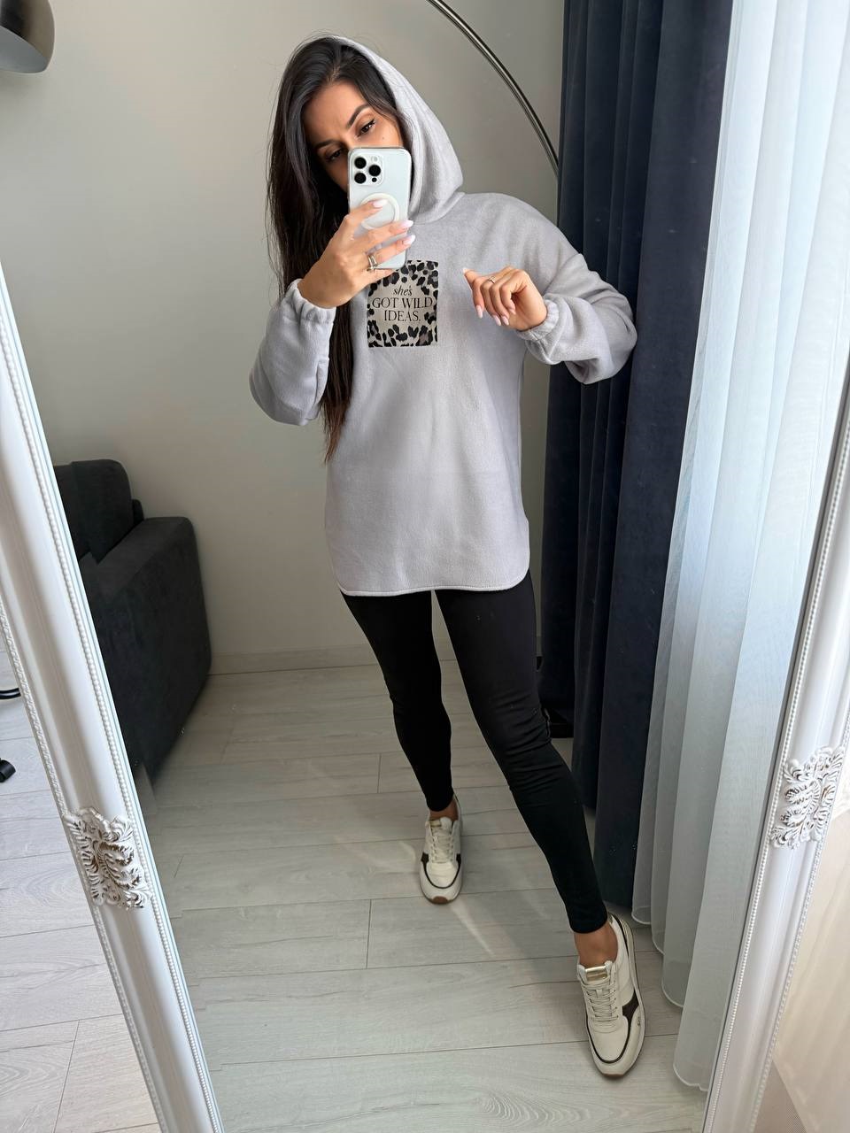 Костюм (кофта с капюшоном+накатом+эластичные лосины на флисе) светло-серый