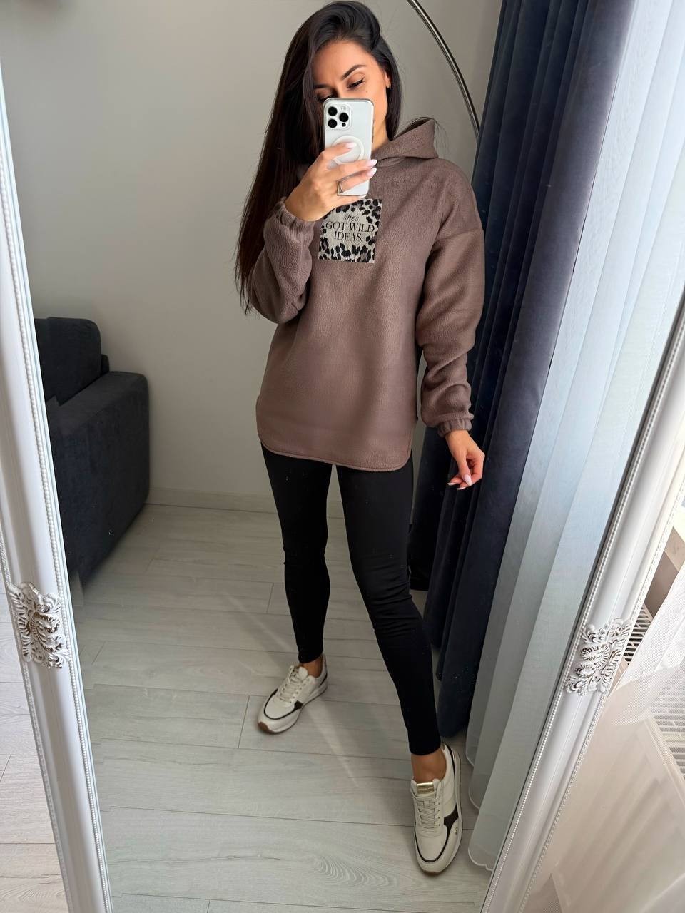 Костюм (кофта с капюшоном+накатом+эластичные лосины на флисе) темно-бежевый