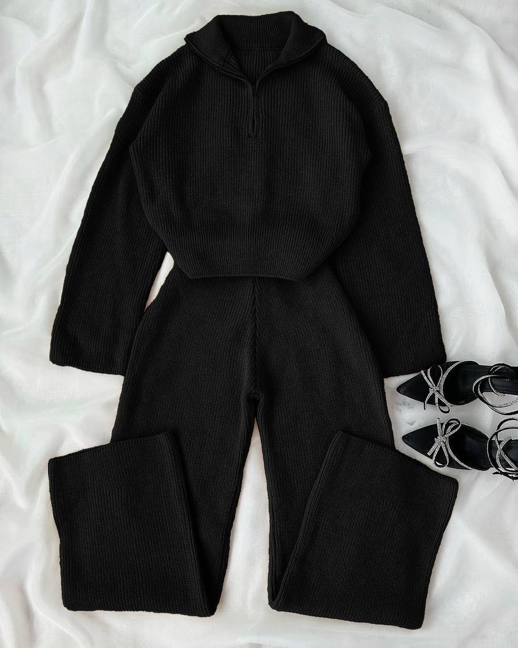 Костюм : кофточка/свитер+штаны палаццо из плотной ткани черный